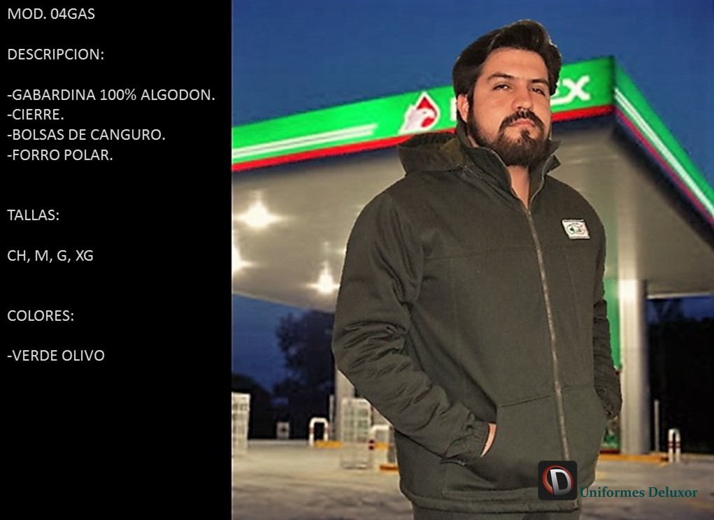 Chamarra para Gasolinera, Gabardina 100% Algodón, Forro Polar, Delcron Interno.